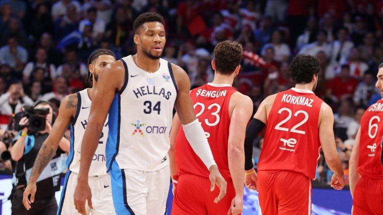 Η Τουρκία του Εργκίν Αταμάν κυριάρχησε από το πρώτο μέρος, εκμεταλλευόμενη τις τρύπες στην ελληνική άμυνα (46 πόντοι παθητικό στη ρακέτα) και τα 22 λάθη της «γαλανόλευκης». Ο Γιάννης Αντετοκούνμπο εγκλωβίστηκε στην αντίπαλη άμυνα, περιοριζόμενος σε 12 πόντους, 12 ριμπάουντ και 5 ασίστ, ενώ οι υπόλοιποι διεθνείς δεν μπόρεσαν να δώσουν λύσεις.